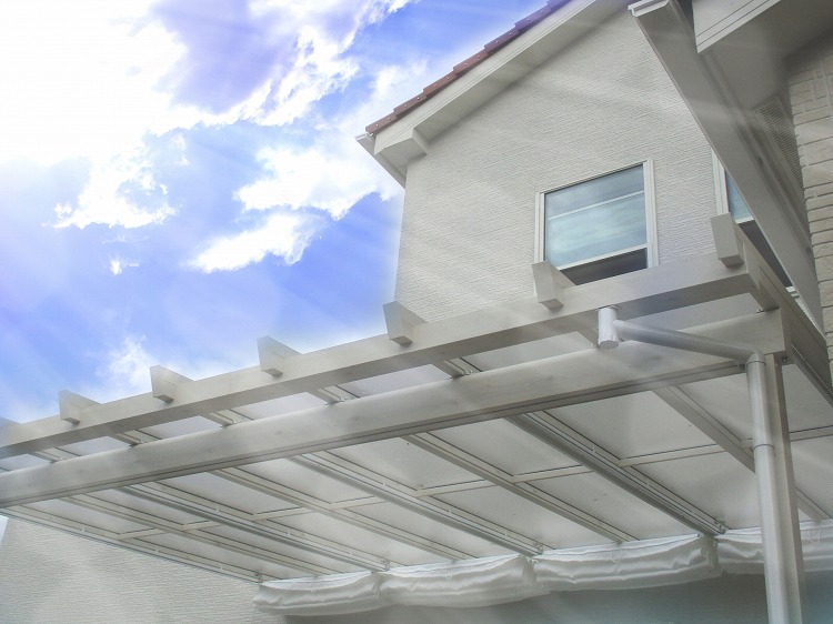外壁に取り付けられる「オーニング」や「タープ」も、外からの遮熱という点で効果的です。