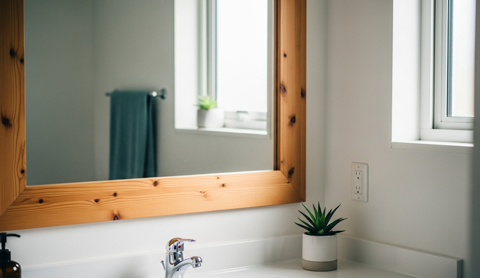 まず、多くの方が魅了されるのが、パイン材の木枠ミラーキャビネットではないでしょうか。