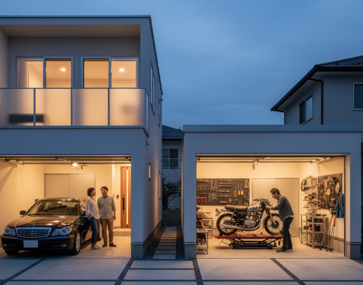 例えば、ガレージ内でエンジン音や工具の音がしても、住居に響きにくいため、気兼ねなく車やバイクいじりに没頭できます。