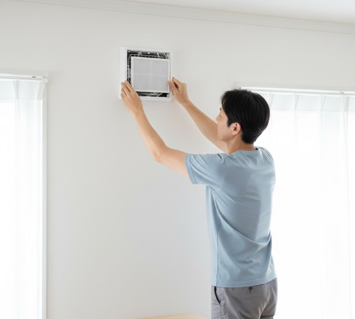 - 24時間換気システムは絶対に止めずフィルター掃除を行う