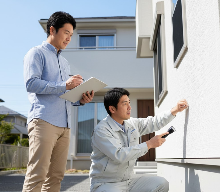 新築後の定期点検では、外壁のひび割れやシーリングの劣化、屋根の状態などをプロの目でチェックしてもらえます。