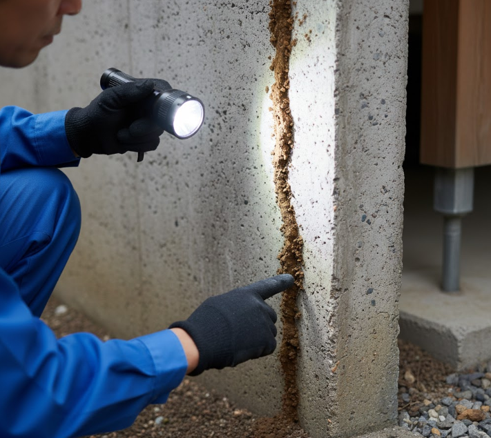 - 基礎の立ち上がりや配管周りは蟻道ができやすい