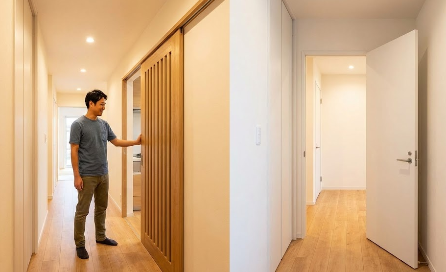 特にドアの種類をどうするかは、部屋の使い勝手や空間の広がり方に大きく影響します。